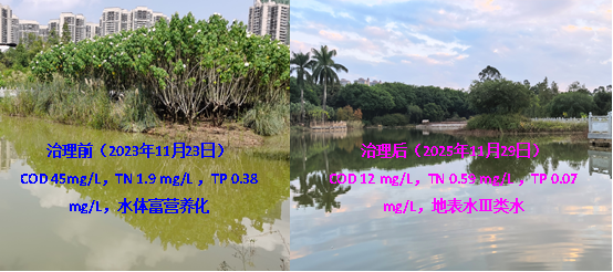 该成果解决了湖塘水体富营养化难治理、水质难达标、水质反复等诸多问题。相比于原位治理传统技术,该技术具有几个方面的创新与优势: